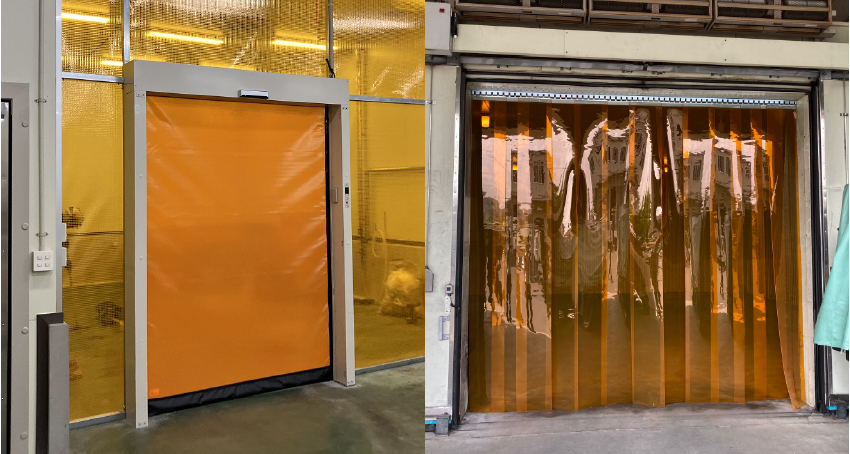 最も寒気が入ってくる搬入口には、「高速シートシャッター」や「のれんカーテン」の併用が最適です。