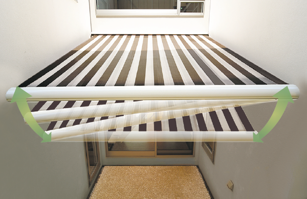 自由に角度調整ができる、住宅用オーニングの定番アイテム。